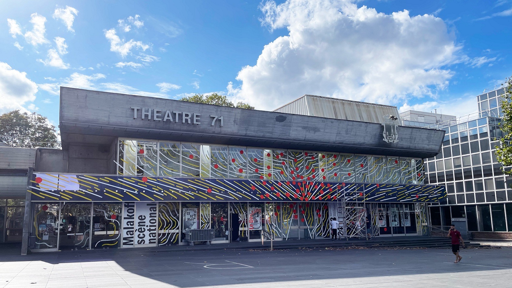 Le Théâtre 71, situé sur la place de la mairie, est reconnaissable entre mille avec sa façade qui se transforme chaque saison au gré des envies de l’artiste Bonnefrite.