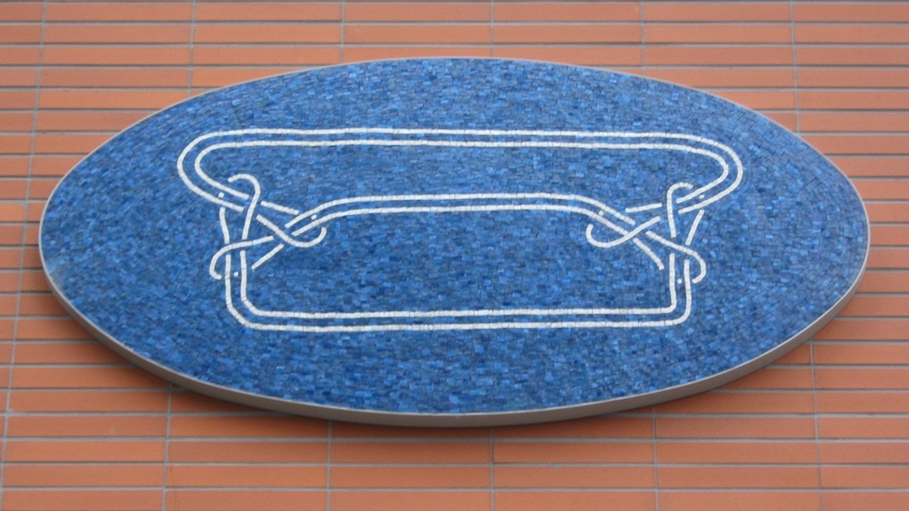 Avec Trait d’union, Éric Duyckaerts crée un lien entre les différents bâtiments universitaires du site des Grands Moulins : le motif de l’entrelac se prolonge et se transforme dans une série de mosaïques marquant les bâtiments de manière à la fois prestigieuse (mosaïques de haute tradition), savante (ces entrelacs sont des figures riches et complexes) et enfantine (ils rappellent des jeux de ficelle). Chacune des neuf mosaÎques décline une version de nœud borroméen, sujet de recherche du mathématicien Pierre Soury, et figure de prédilection du psychanalyste Jacques Lacan. Dans sa version la plus simple, ce nœud est constitué de trois anneaux entrelacés, inséparables les uns des autres. Comme nous y invite le titre de l’œuvre, Trait d’union, ces boucles peuvent être lues comme une métaphore de l’entrelac des savoirs, thème cher à l’artiste.